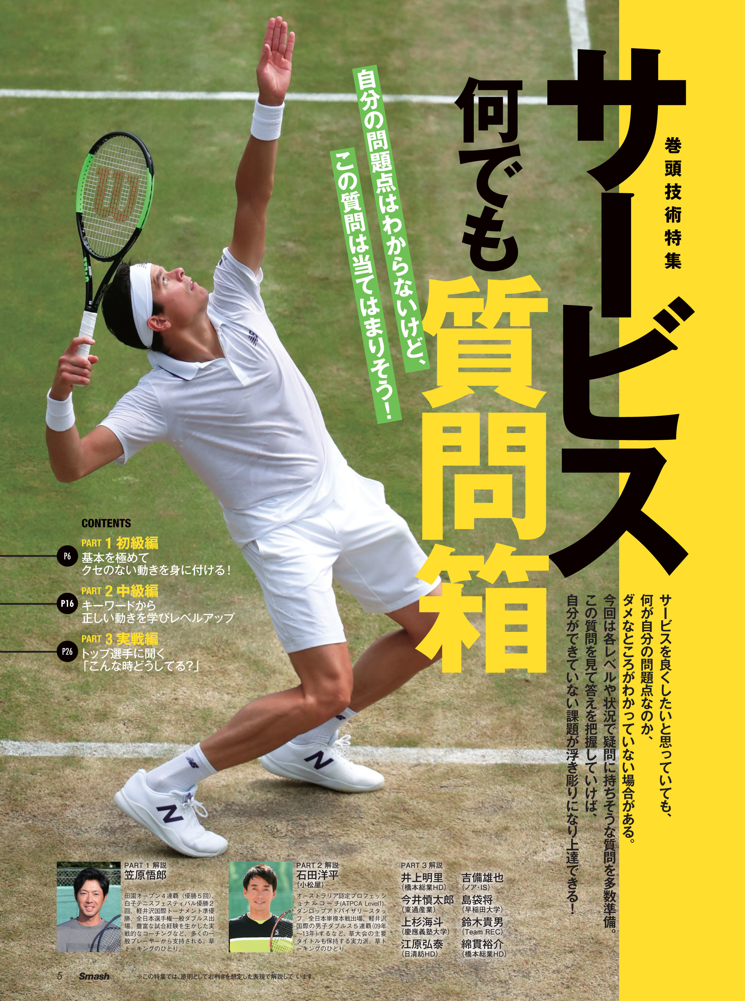 サービスを良くしたいと思っていても、何が自分の問題点なのか、ダメなところがわかっていない場合がある。今回は各レベルや状況で疑問に持ちそうな質問を多数準備。この質問を見て答えを把握していけば、自分ができていない課題が浮き彫りになり上達できる! パート3では大勢の日本トップ選手(井上明里、今井慎太郎、上杉海斗、江原弘泰、吉備雄也、島袋将、鈴木貴男、綿貫裕介)が解説してくれており、充実の内容になっている。
